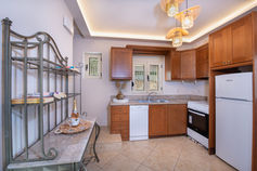 Upon entering the ground floor of Great Escape Villa Fengari, you will encounter an open and functional space that includes a living room and a fully equipped kitchen with branded appliances, a breakfast bar and a dining area. The space is equipped with air conditioning and a 45'' smart TV for comfortable moments of relaxation.
